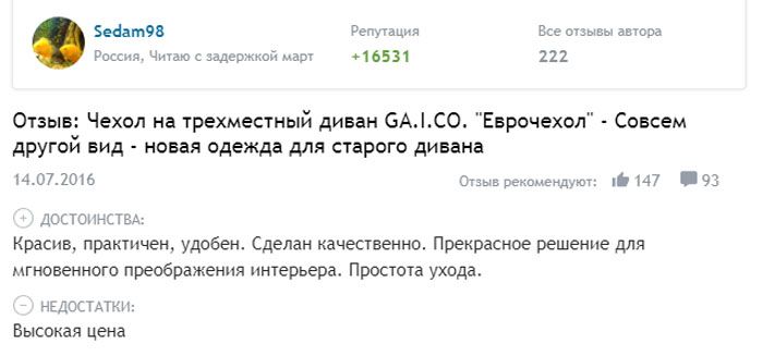 Don't trust the sellers - the products are not dimensionless! Any textile has different extensibility, and if you try to pull the product over very large furniture, the material will lose all elasticity. It is important to take into account the length of the backrest, the height from the floor to the seat. We must not forget that depth is also important. If there are armrests, their size is also needed.