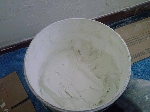 - Solution application. At this stage, the putty is smeared on the wall with a line, the length of which is one meter. The layer thickness must be at least 3 mm.