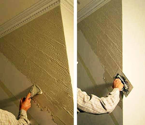 This method of applying plaster is the simplest and therefore can be tried by those who are decorating an apartment for the first time. For this type of texture, it is not necessary to prepare a special mixture, it is enough to use standard plaster or cement options. It is best to use a ready-made solution, but it must be remembered that too loose compositions may not adhere well to the surface.