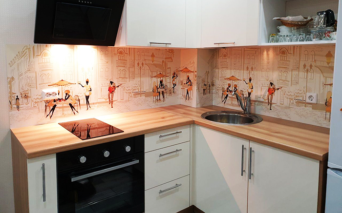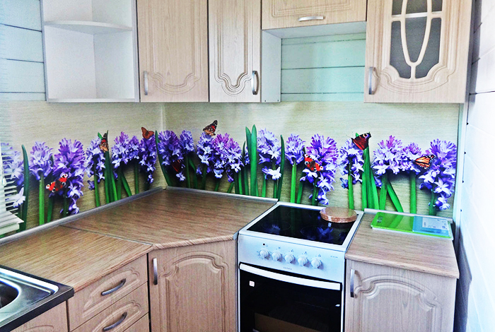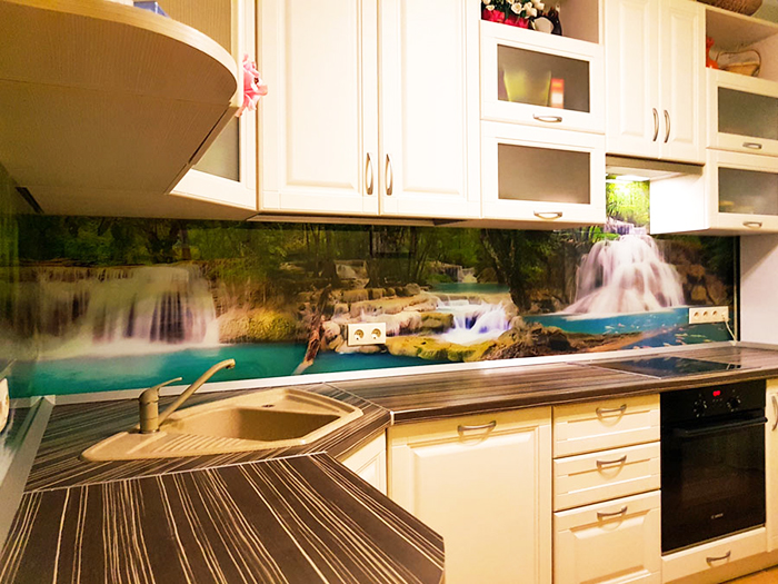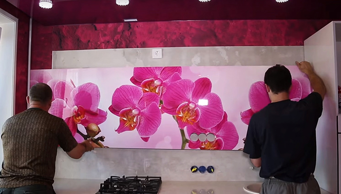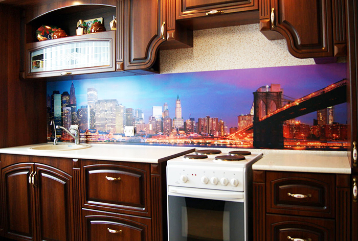 These constructs are composed of substances such as acrylonitrile, butadiene and styrene. The apron for the kitchen made of ABS plastic has an excellent independent decor, it can have both a glossy and a matte surface. When making a picture, the method of photo printing is used.