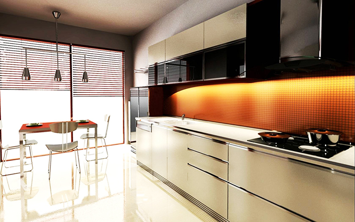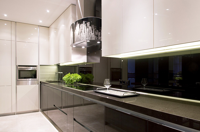 Depending on the interior style, you should also choose plastic panels to protect the working area.