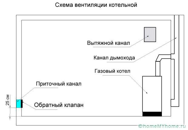 If this happens, the ventilation (exhaust) duct must remove the combustion products from the room. To do this, its size is calculated in such a way that it can provide a complete replacement of air in the room in 20 minutes.