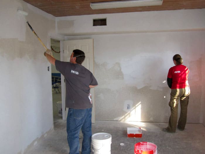 The walls are coated carefully, leaving no streaks or flowing streams of material
