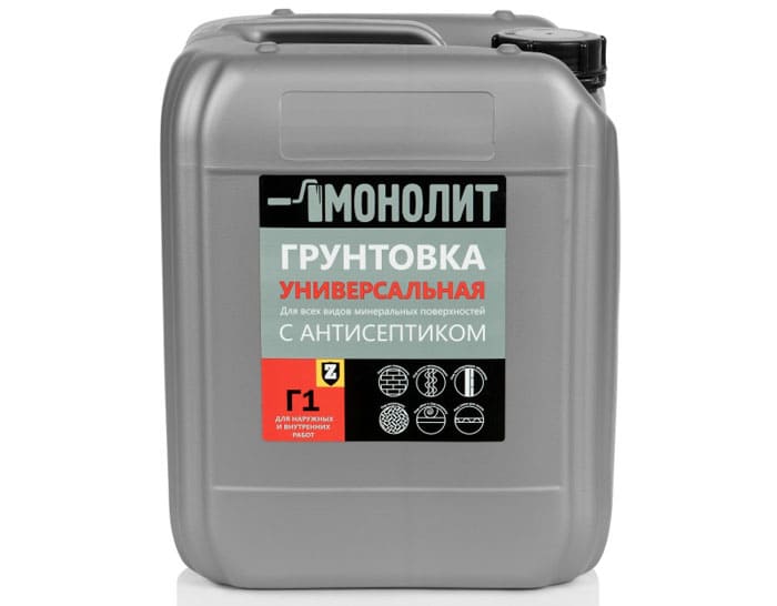 Mineral primer consists of lime, cement and gypsum. This composition is suitable for concrete, bricks, expanded clay concrete blocks, plastered walls.