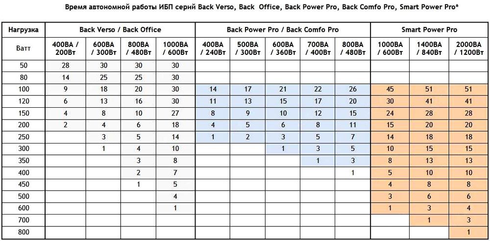 An uninterruptible power supply was bought to connect a candy bar, laptop, router and MFP. The UPS has 4 outlets, 3 of which are battery backed and one is simply filtered. The battery lasts a long time. Provides power support for the devices listed above for more than 40 minutes - empirically tested.