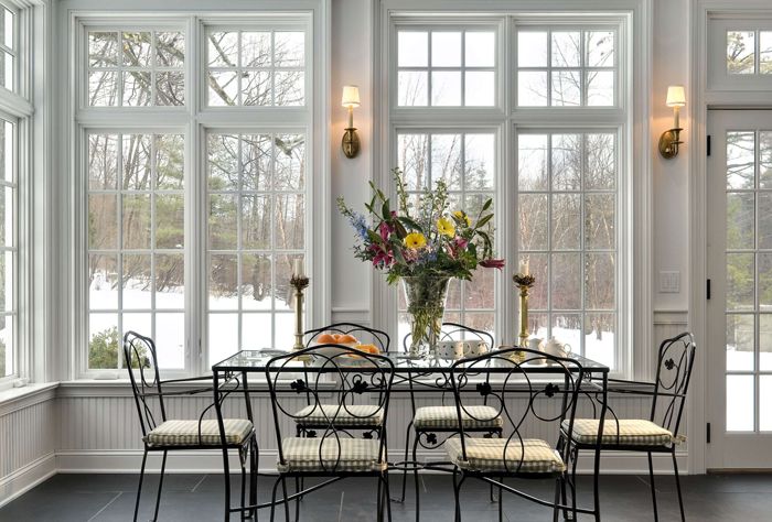 Natural light enters the room through narrow, elongated windows in the English style (example in the photo below).