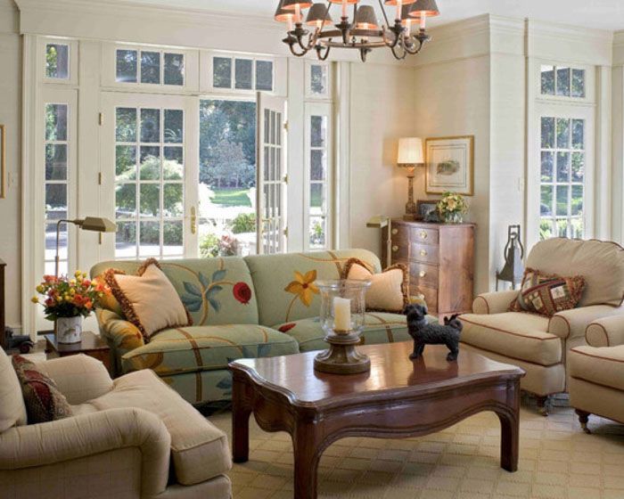 It is customary to decorate the walls of the room family photos, tapestries and paintings in baguette frames. Porcelain sets and vases are placed in cabinets and on shelves. In the English living room, a chessboard with handmade wooden figures will look very harmonious, a large globe is suitable for an office, and a bedroom can be decorated with candlesticks with a beautiful floral pattern.