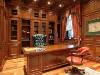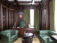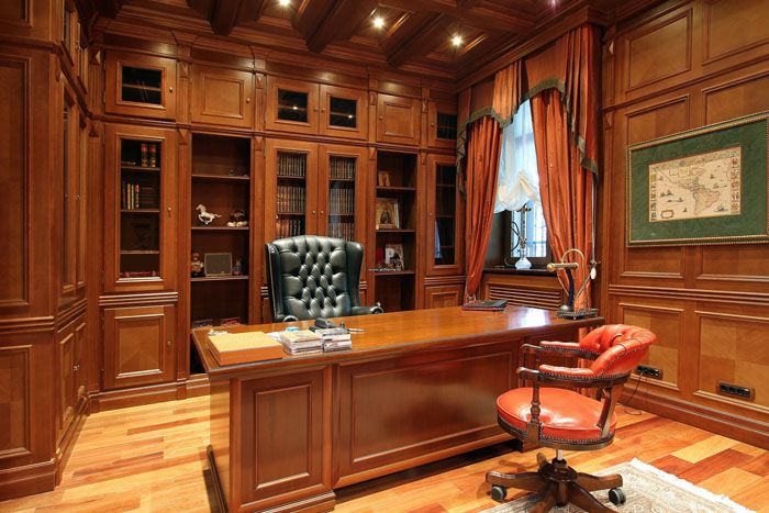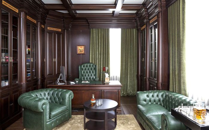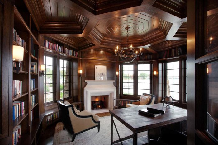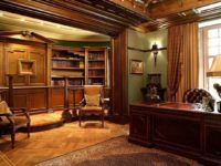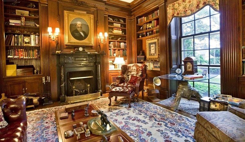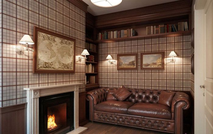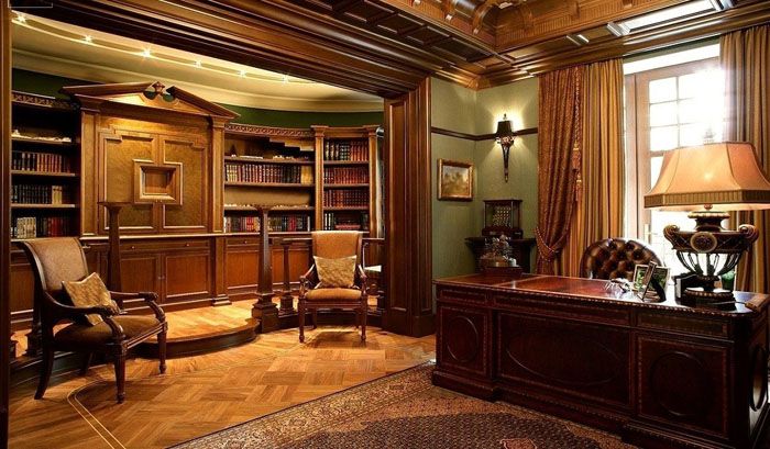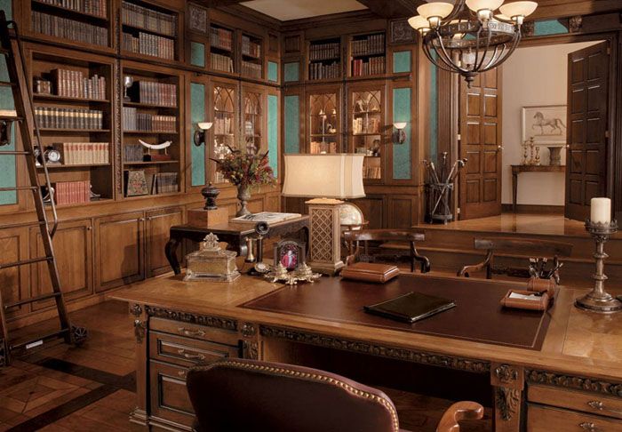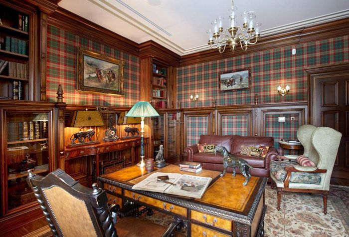 The office can become the heart of your English home. It is difficult to imagine the count's estate without this premises. If the availability of free space allows, then in addition to a massive writing table (an integral part of the study), it can be used to place a library and organize a place for reading.
