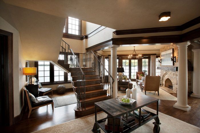 A spacious country house provides its owners with plenty of room for imagination. A classic wooden staircase, fireplace and a large library will perfectly fit into the two-story house. These attributes of a truly English home will make your home look respectable and sophisticated.