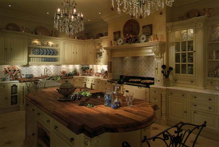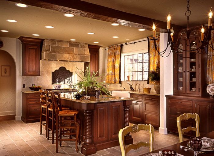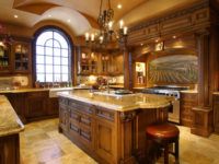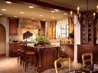 In the classic version, the floor is certainly covered with parquet. However, if this option is perfect for an English-style living room, then parquet flooring in the kitchen will be impractical. In addition, finishing the floor with a parquet board is an expensive pleasure, and not everyone can afford it. Therefore, you can safely use as a floor covering laminate or ceramic stone tiles.
