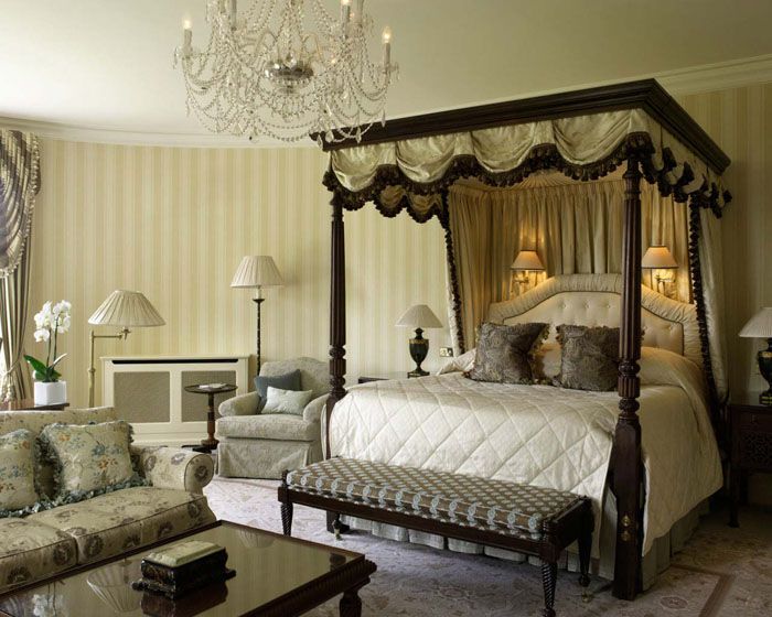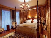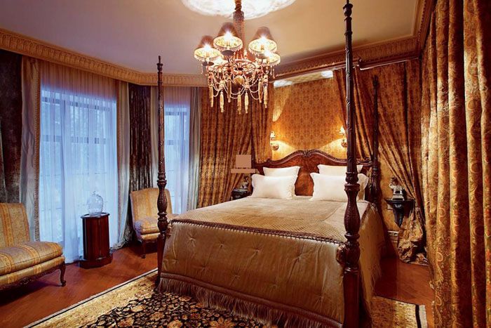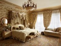 The centerpiece of every bedroom is the bed. In a Victorian bedroom, it should be large, set in the center of the room. Choose a bed with a wooden headboard decorated with fine carvings. For a bedroom with a large area and a high ceiling, a bed with a heavy canopy made of curtain fabric is suitable.