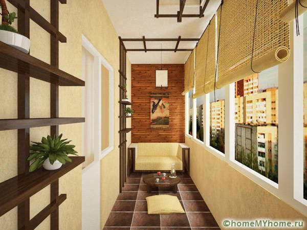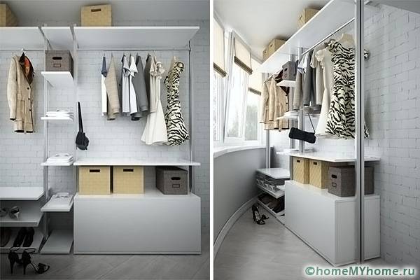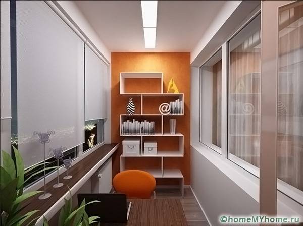 The choice of material and design is influenced by the future purpose of the balcony room. In a small area, you can equip a balcony dressing roomwhere you can place a wardrobe and a mirror with a pouf.