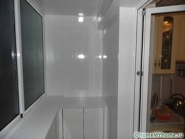 - glossy surfaces are used that reflect light and visually expand the balcony;