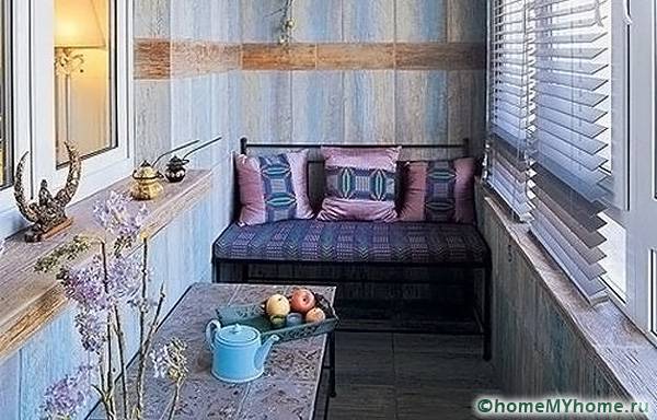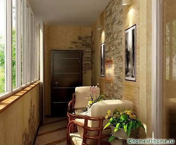 An interesting idea for decorating balconies is a photo with an artificial stone. This one is ideally operated in a similar room with not the most favorable conditions.