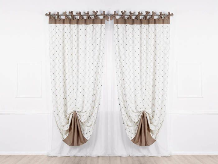 Another option for fastening the type of loops is ties. They look like knots or bows. Often made from the same fabric as the curtains and simply sewn onto them. Sometimes the ties are selected separately and can be threaded through the holes.