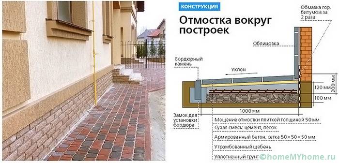 - 4 Do-it-yourself blind area around the house: video and useful recommendations