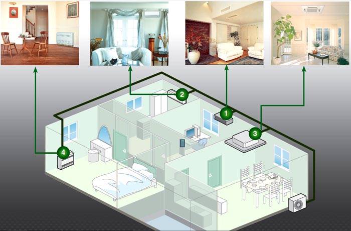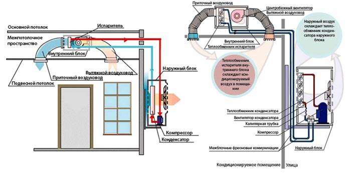 Air masses in both inverter and conventional air conditioners pass through heat exchangers, the temperature of the incoming streams is measured by a sensor. A distinctive feature in an inverter duct air conditioner for an apartment is that when the set parameter is reached, the compressor does not stop, but the speed decreases. The cooling capacity is reduced accordingly. These processes are controlled by the sensor, while maintaining a given temperature regime.