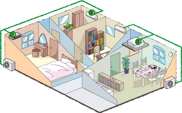 - household products for installation on vertical surfaces - split systems (the structure includes one internal and one external unit) and multi split systems (several internal ones are output to one external unit). All noise generating units are located in the outer case. Installation of one outdoor unit does not spoil the architectural appearance of the building;