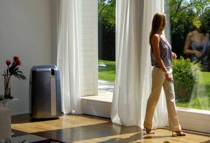 - monoblock floor products - simple installation is carried out independently without the involvement of professional craftsmen. And the second advantage is that mobile air conditioners can be moved to any room. The disadvantages of such models include a fairly high noise and high price.