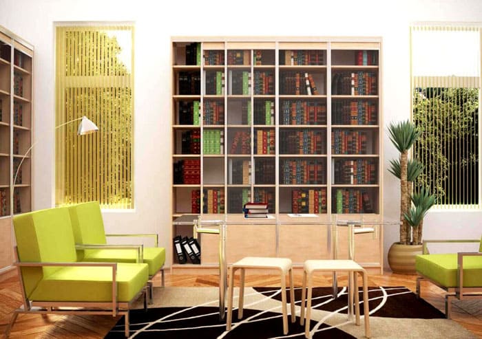 For small rooms, it is advisable to purchase low cabinets that are not designed for a large number of books