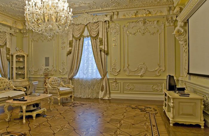 There remains only one question to be clarified: how much will all this splendor cost? Take for example a few basic items and prices as of July 2018. So, a ceiling socket, depending on the size and complexity of execution, will cost you from 2,000 to 5,000 rubles. Curly cornices 2 meters long will cost 900-2,500 rubles. The price of a pilaster is from 500 to 1,500 rubles, a column is 2,000-15,000 rubles.