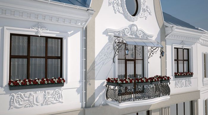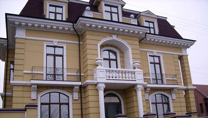 Stucco elements traditionally decorate facades in classical styles. Each historical direction has its own types of decorative elements. Leaves, rosettes and bas-reliefs are collected in holistic compositions. What can be used on a building facade?