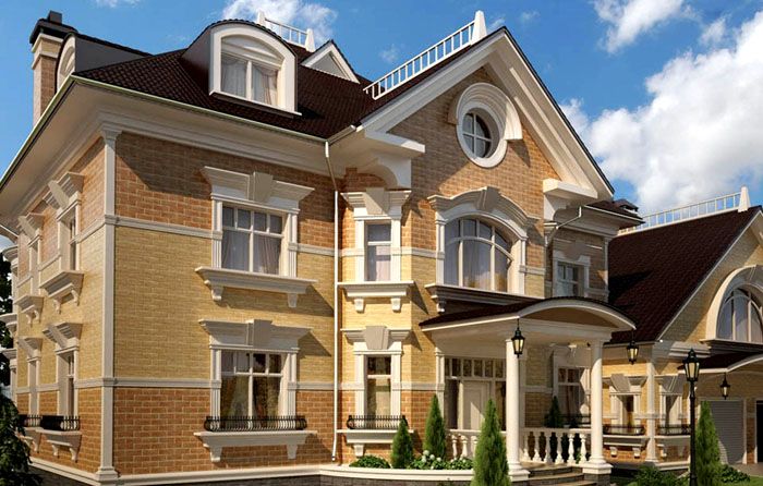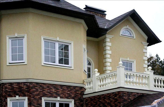 The luxury of the interior should have a logical continuation on the facade of the building. The architectural solution of the house with stucco decoration is the result of the work of an experienced designer. It is necessary that the dimensions of the elements strictly correspond to the proportions of the building. The most successful examples are in this gallery.