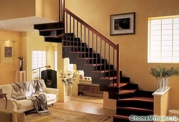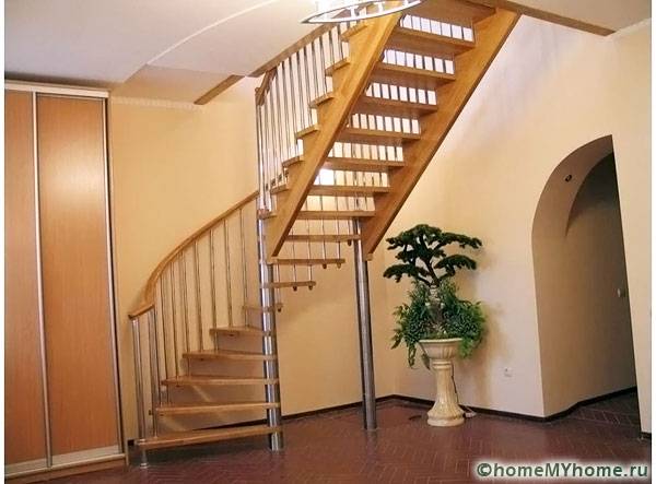 In addition to dividing by the number of flights, such stairs are divided into straight and swivel, and by location they are divided into wall or independent. The latter often rest against the center of the room and can only be allowed to owners with a large area of the house.