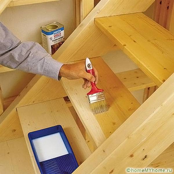 - The finished staircase needs to be treated with special compounds: polishing, antiseptic, optional paint and varnish.