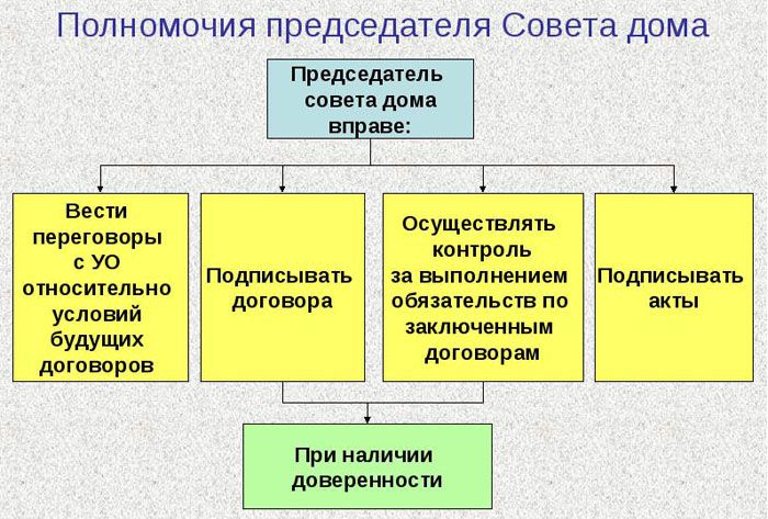 A chairman is elected from the council members of an apartment building, who is endowed with certain powers, expressed in his rights and duties.