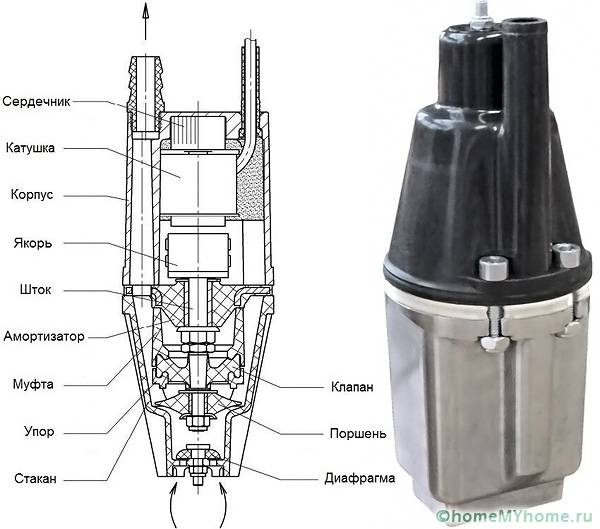 This model is basic, therefore it lacks some necessary additional parts, such as automatic overheating protection, filter and pressure regulating device... The classic unit cannot submerge to a depth of more than 5 meters, and supplies water through the bottom valve.
