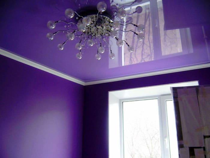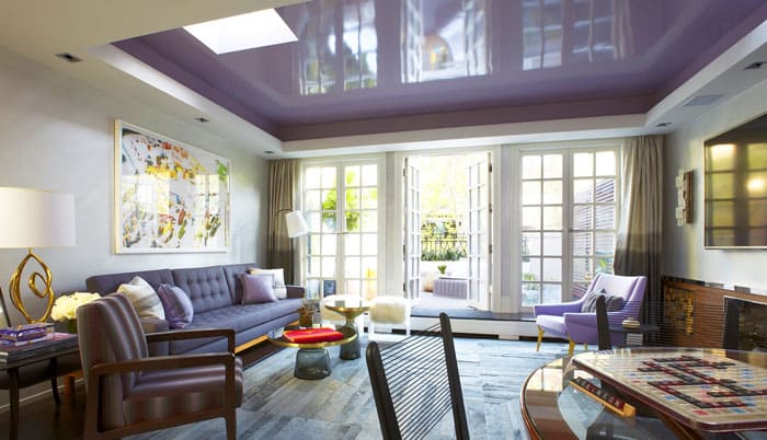 Purple and lilac options are suitable for those who are not ready for a standard interior and crave brighter colors. You can darken the walls, or you can darken the ceiling.