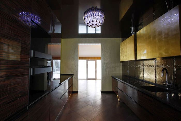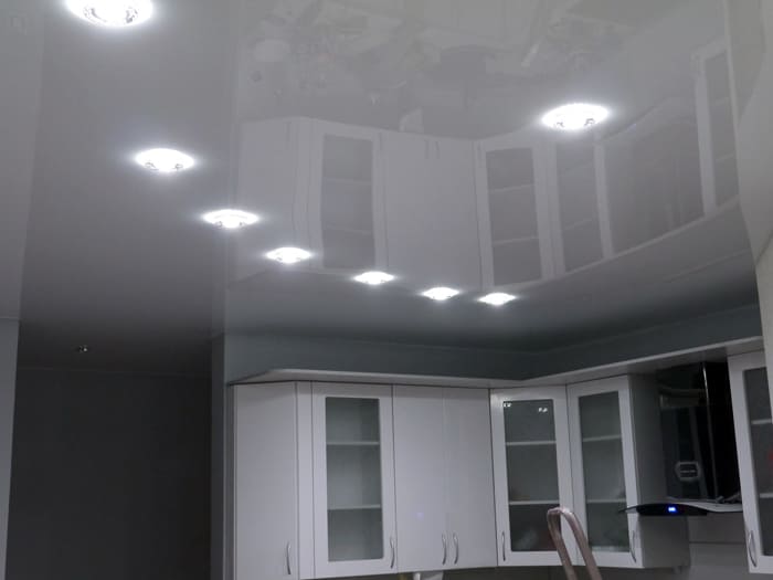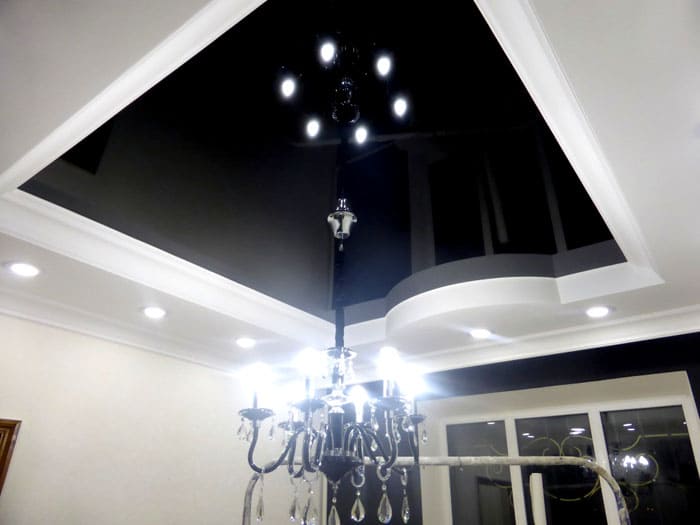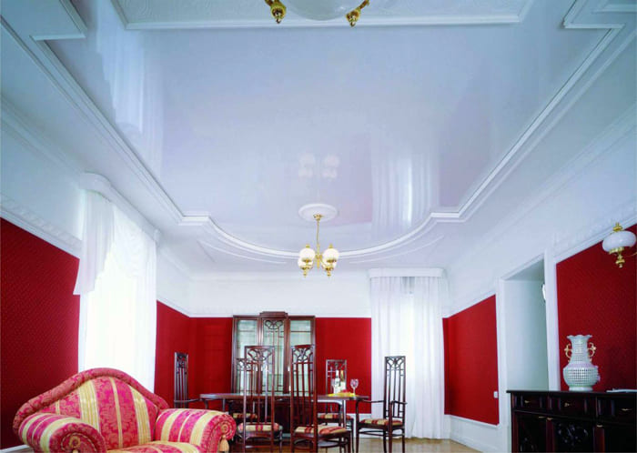 It is worth saying that the ceiling itself is very beautiful and decorative, which plays a role in the design of the room, visually making it larger. The reduction of a few centimeters is imperceptible precisely because of the gloss.
