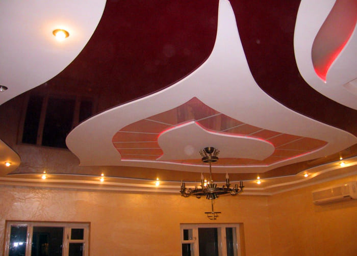 To create multiple levels use plasterboard structuresgiving the desired relief. It is more difficult to create a multi-level relief, the price for work rises.