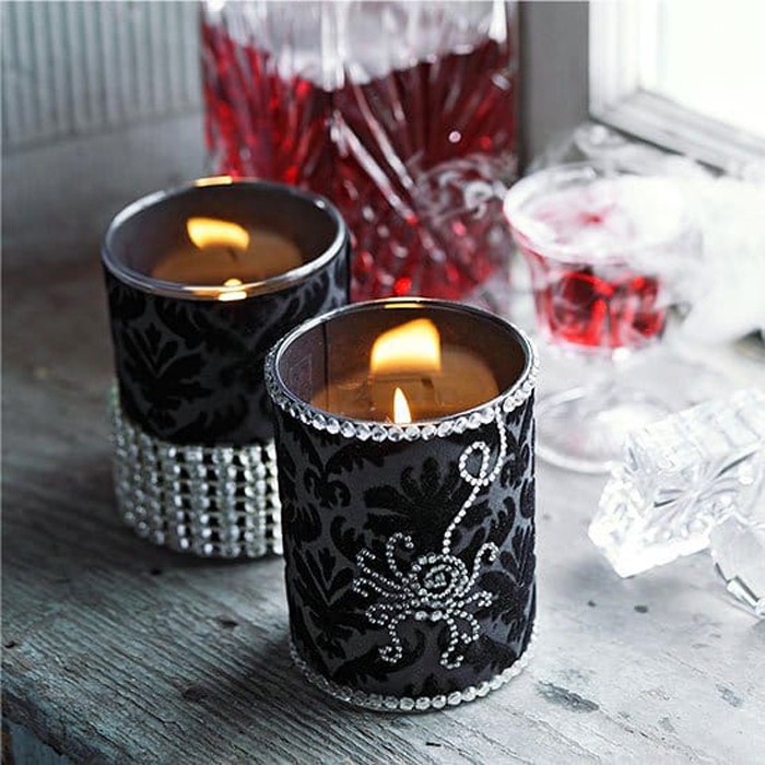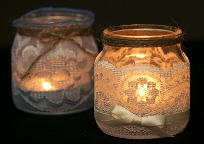 Small glass jars become a convenient haven for a small flat candle. You just need to decorate the edge of the can
