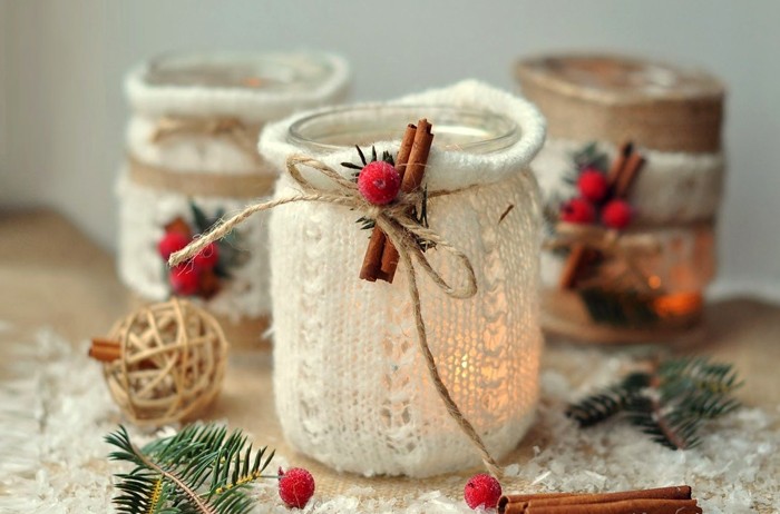 If there are several extra jars in the house, then they will make beautiful festive New Year's candlesticks, which are made by hand. This is an indisputable decoration of the home, especially since it does not require large investments.