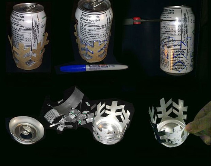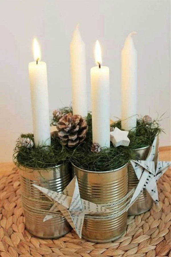 Aluminum cans are easy to cut and can become an interesting base for a candlestick, just do not let children touch them because of the sharp edges