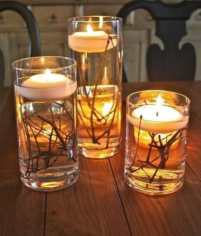 Tall glasses and tree branches, water and a candle, and the result of this combination will be beauty that can be placed on a festive table or used as a single composition