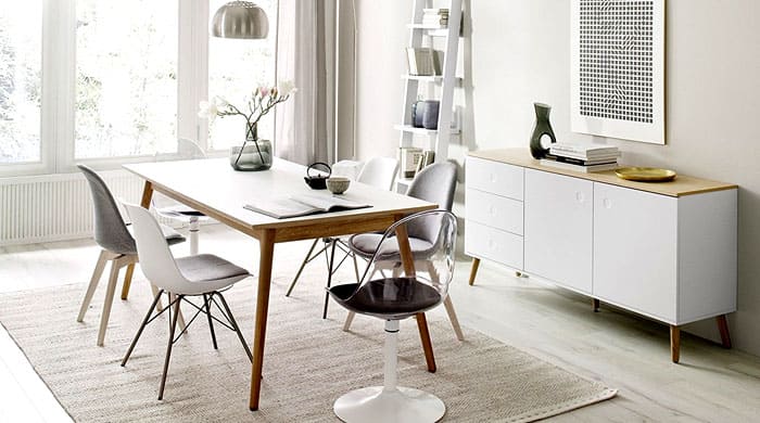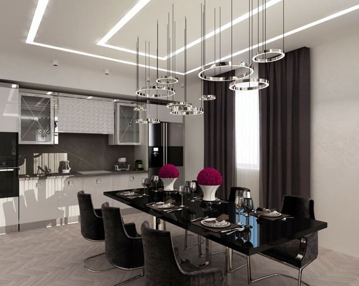 The large area obviously has its advantages. For example, even if few people live in the house, a grandiose table with a set of chairs will make the dining room look perfect and imposing. But even if there is no desire to acquire a long royal table, you can always find a beautiful model, not limited by the walls of a small room.
