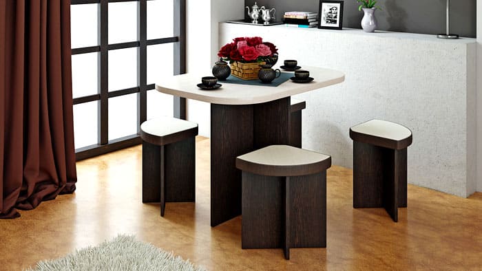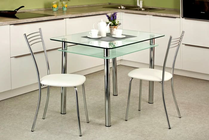The square panel is literally made for a small kitchen. Only four people can fit at such a table, but, if necessary, the table can be easily moved into any corner.