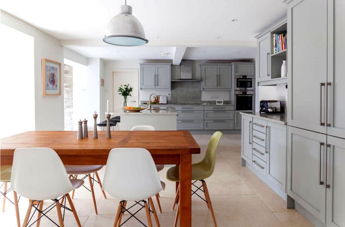 Spacious kitchens suggest a central location for the dining group. If the room is elongated, you can safely purchase a rectangular model.