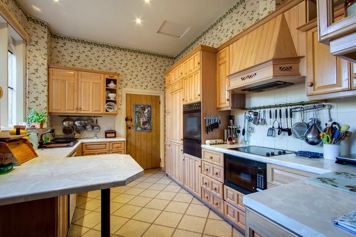 - large patterns visually reduce the size of the kitchen, small ones will increase;