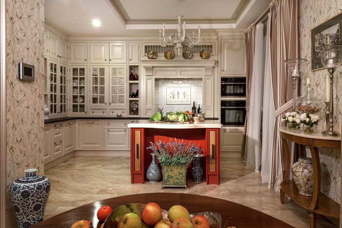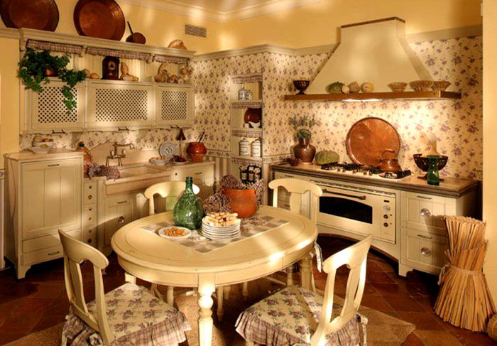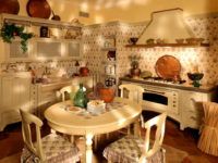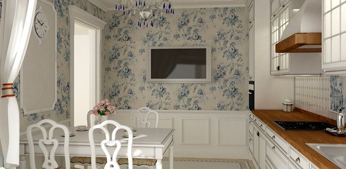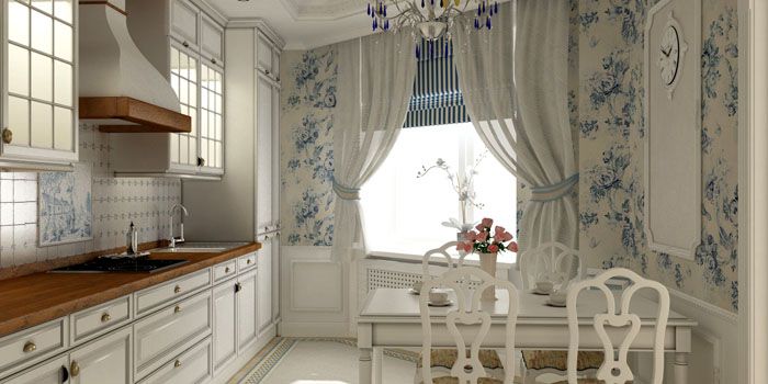 The kitchen, decorated in a warm and cozy Provence style, is France in a small space. Be sure to choose canvases in pastel colors. The drawing should be in small flowers, this cute accent emphasizes the main idea: the charm and tenderness of the design. For this direction, the following colors are suitable: