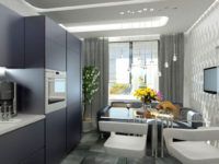 Black can be used as a contrast. When choosing a decor, bright accents can be chosen.