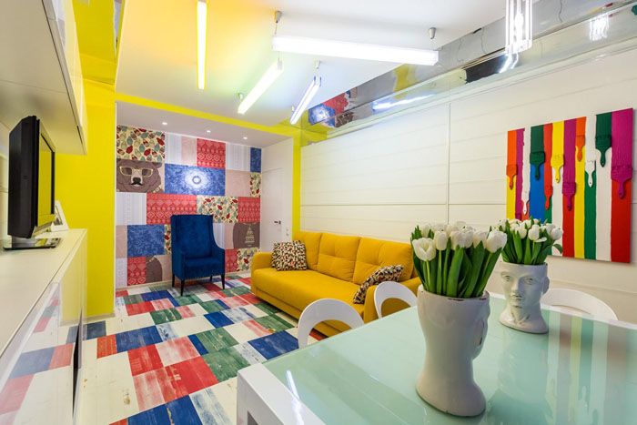 - if one surface is decorated with bright materials, the rest are pasted over in a calmer scale;