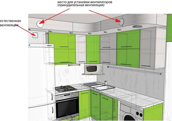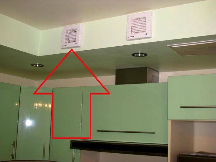 Ventilation with a non-return valve in the kitchen can be supplemented with an extractor hood that operates on the total volume of the room