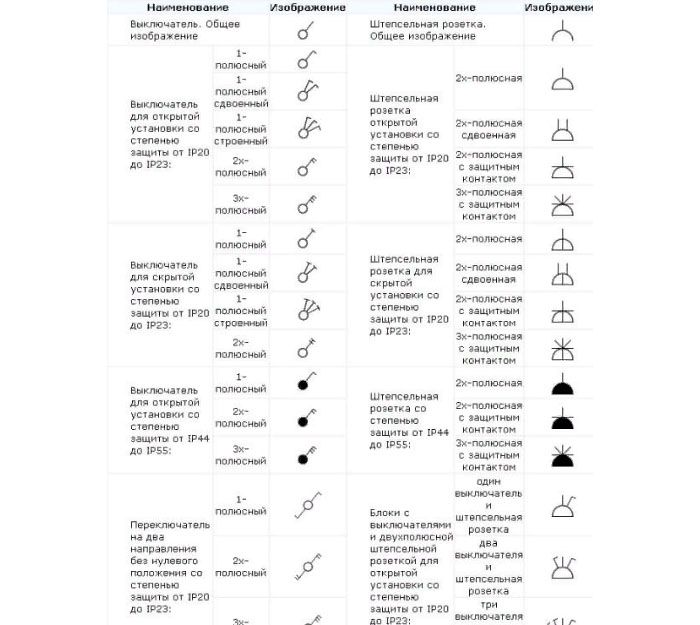 Wiring accessories (sockets and switches), depending on the design and type of execution, are displayed like this