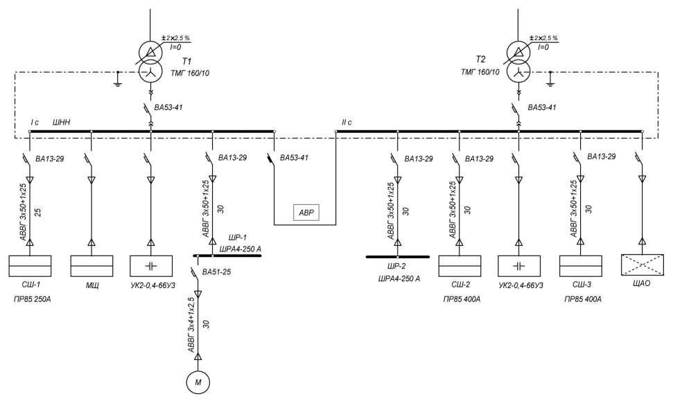 The design option for a single-line power supply diagram in accordance with these GOSTs is shown in the following figure.