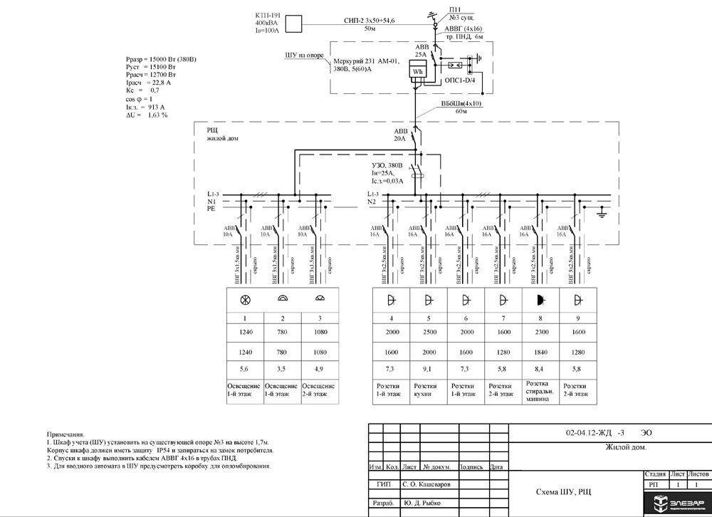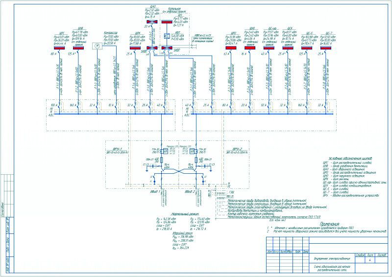 Depending on the stage at which work on the creation of the electrical network of the object is drawn up a single-line diagram, its type and intended purpose depend.At the stage of development of project documentation, a single-line calculation diagram is drawn up, which serves as the main document for calculating the parameters of the power supply system. It is this document that is necessary for subsequent approvals with the authorities issuing technical conditions for connecting the construction object to the existing electrical networks, which are the power grid organizations at the location of the facility-consumer of electrical energy.