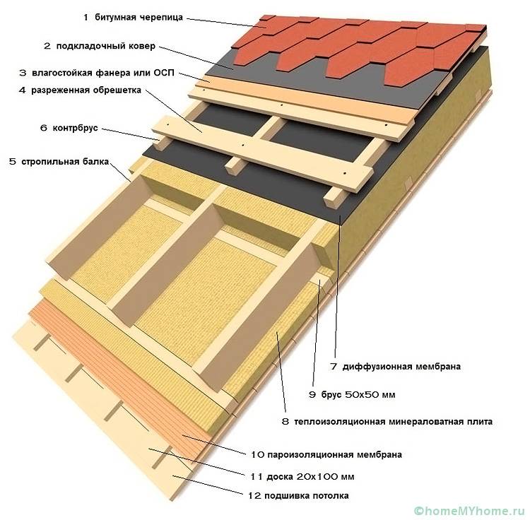 - Insulating layers. They are laid between the rafters and fixed to the lathing and sheathing from the inside of the building. Their role is to ensure maximum protection of the object and load-bearing structural elements from moisture or freezing.